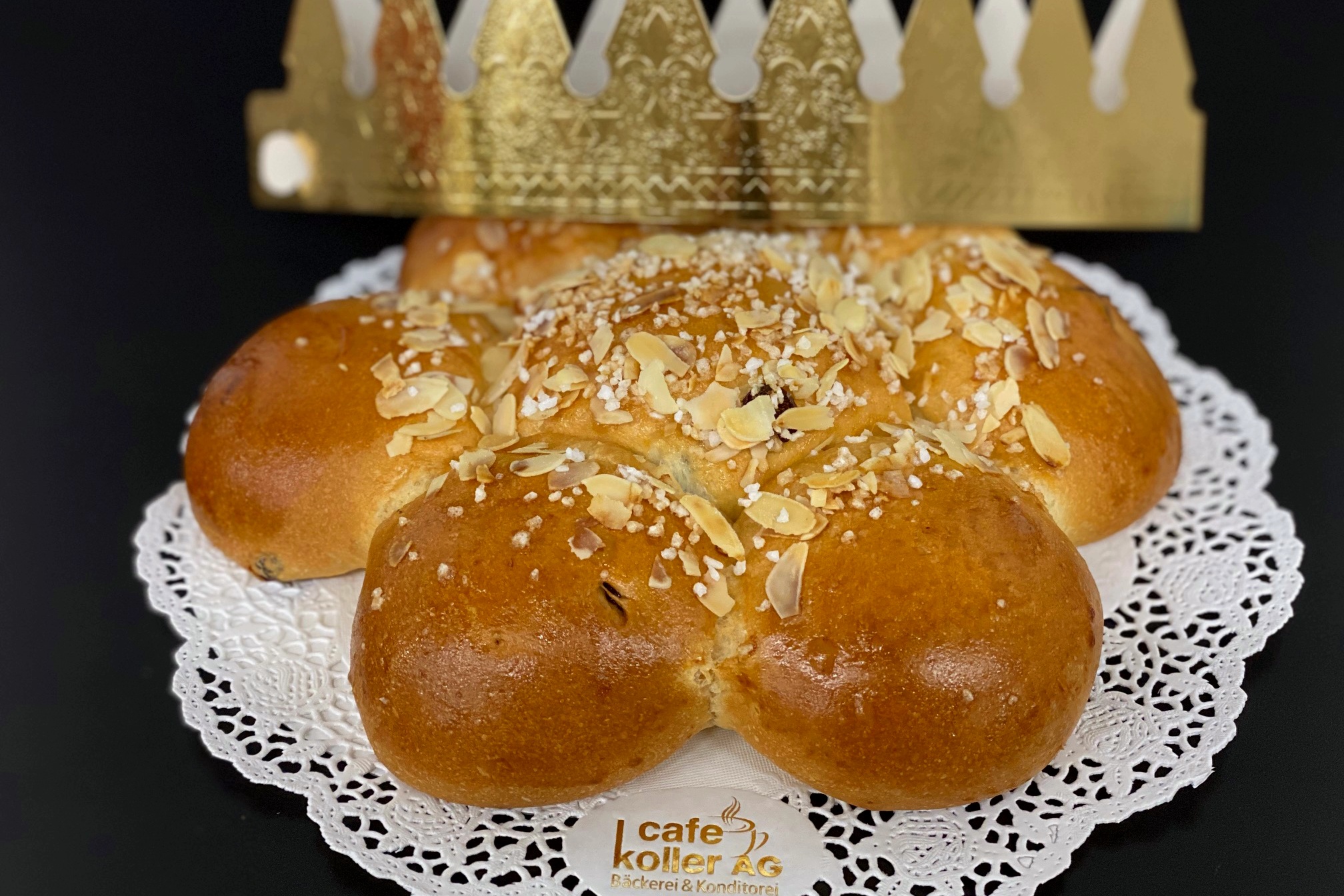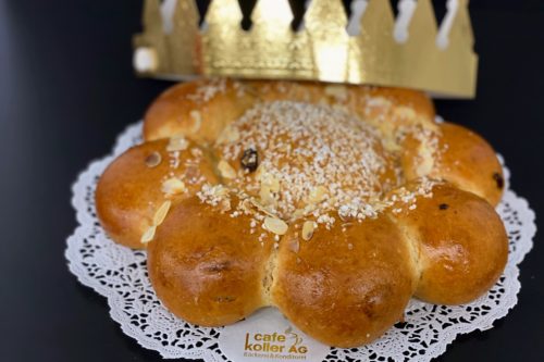 Traditionelles Gebäck mit Butter, Mandelmasse, Eier und Sultaninen. Bestreut mit Hagelzucker und Mandeln. Ein Plastik-König ist in einem Aussenstück versteckt. Pro Kuchen wird eine Papierkrone mitgegeben.